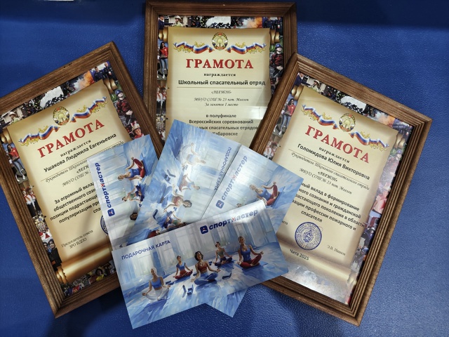 Представители Забайкальского регионального отделения ВДПО, пользуясь случаем, поздравили победителей Всероссийских соревнований школьных спасательных отрядов в г. Хабаровске спасательный отряд МБОУ СОШ № 23 пгт. Могзон имени В. Г. Кочнева «Легион»!
